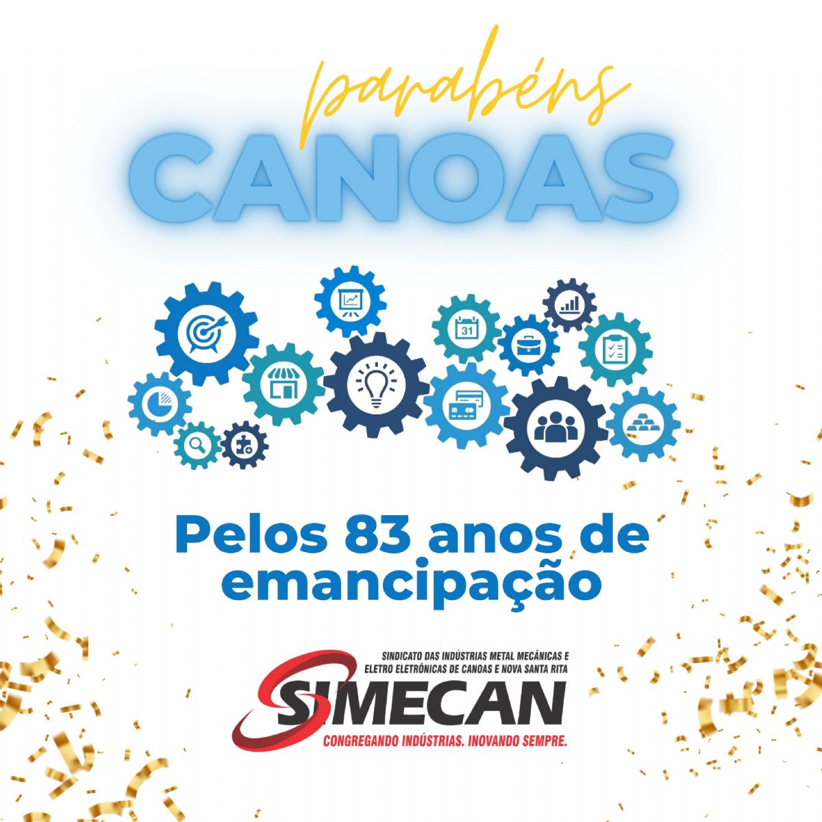 O Simecan (Sindicato das Indústrias Metalmecânicas e Eletroeletrônicas de Canoas e Nova Santa Rita) presta sua homenagem à cidade de Canoas e sua população, pelos 83 anos de fundação, dos quais há 52 anos a entidade integra e participa deste desenvolvimento.