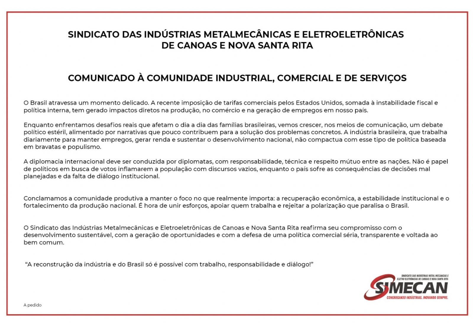 A homenagem do Simecan pelo dia da Indústria