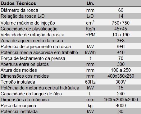 - Grupo de injeção óleo dinâmica com rosca pistão 66mm.