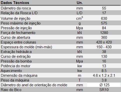 A HDX 128C é um injetora horizontal para termoplásticos especialmente desenvolvida para se adequar ao mercado calçadista. É um equipamento que concilia alta eficiência e desempenho no ciclo produtivo com baixo consumo de energia, devido a utilização da bomba hidráulica variável. Além disso, é um equipamento de fácil operação e manutenção, de reação rápida, repetibilidade e com maior tempo de vida útil.